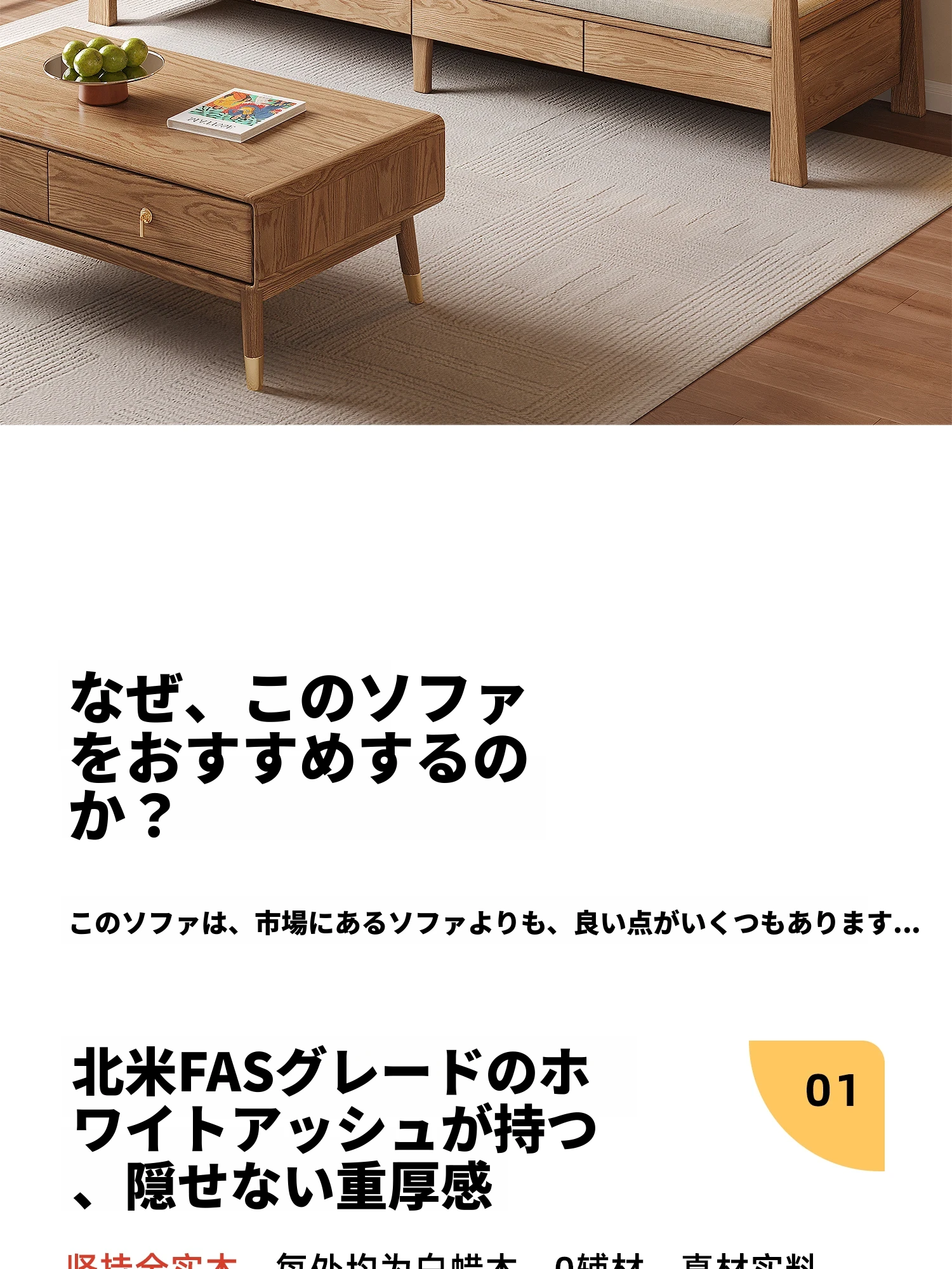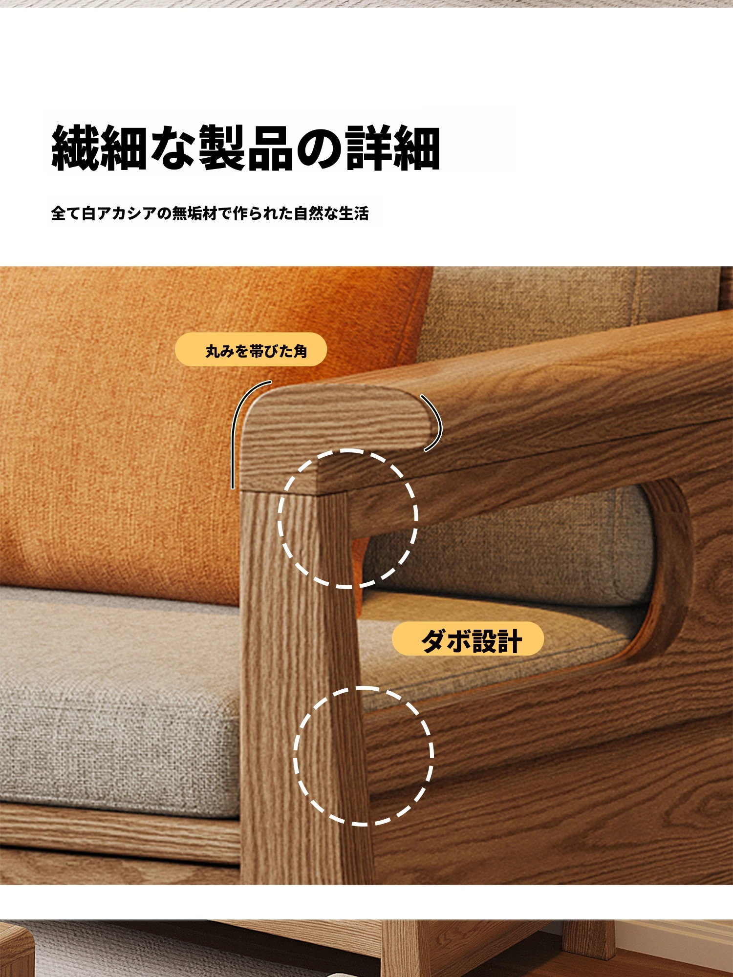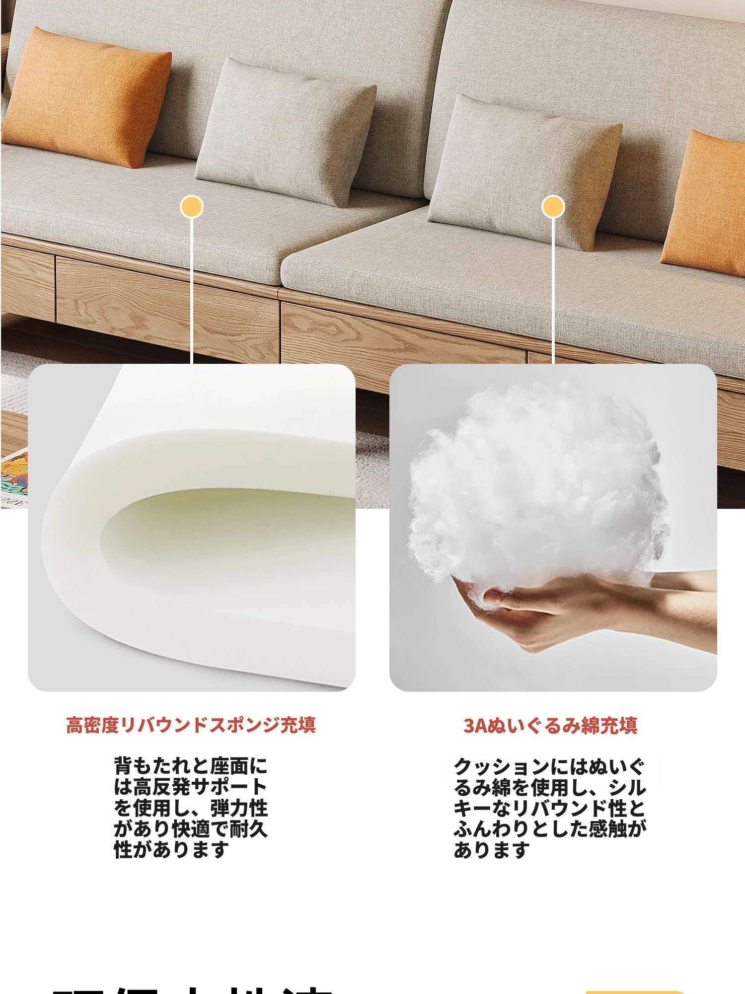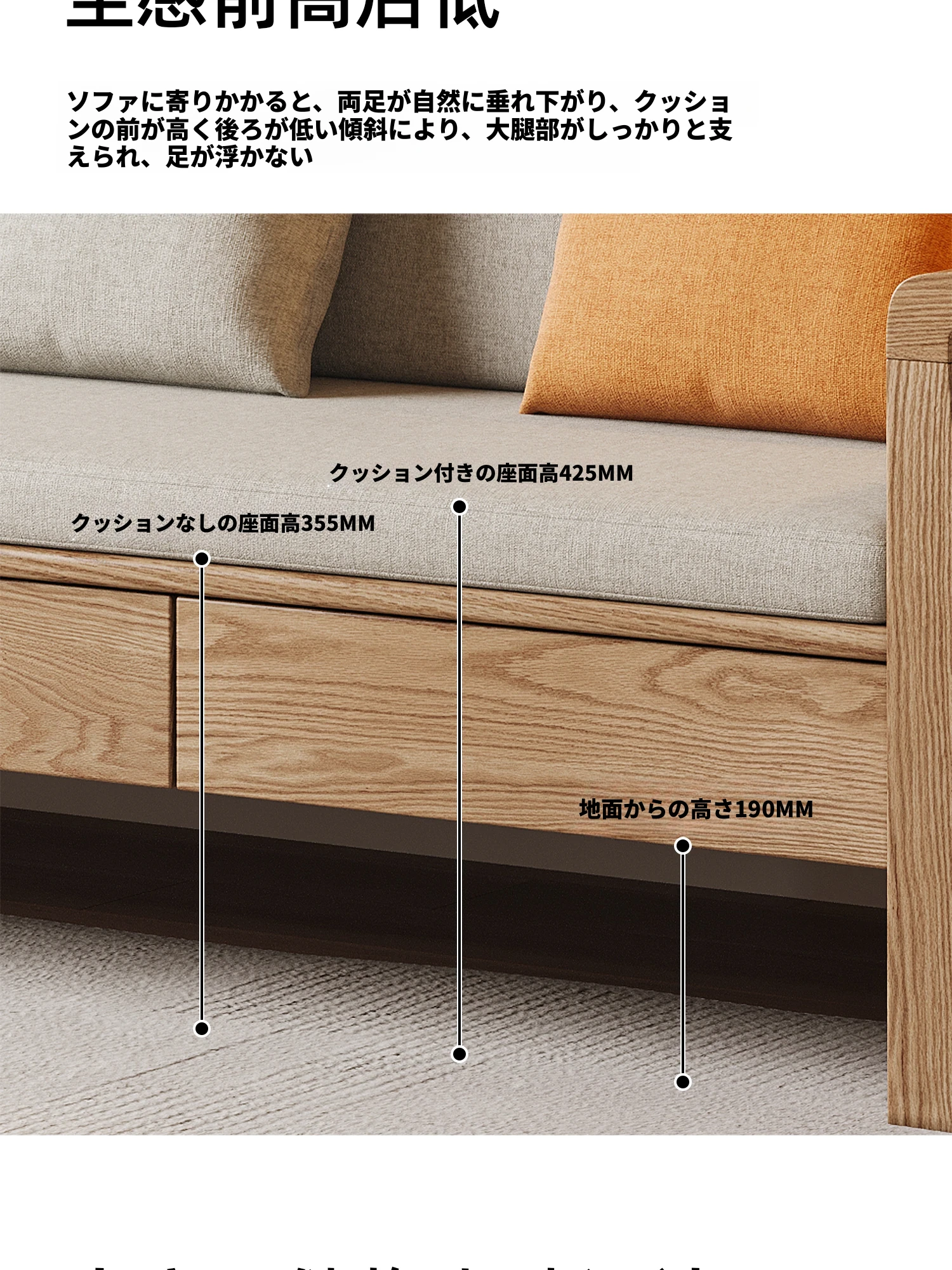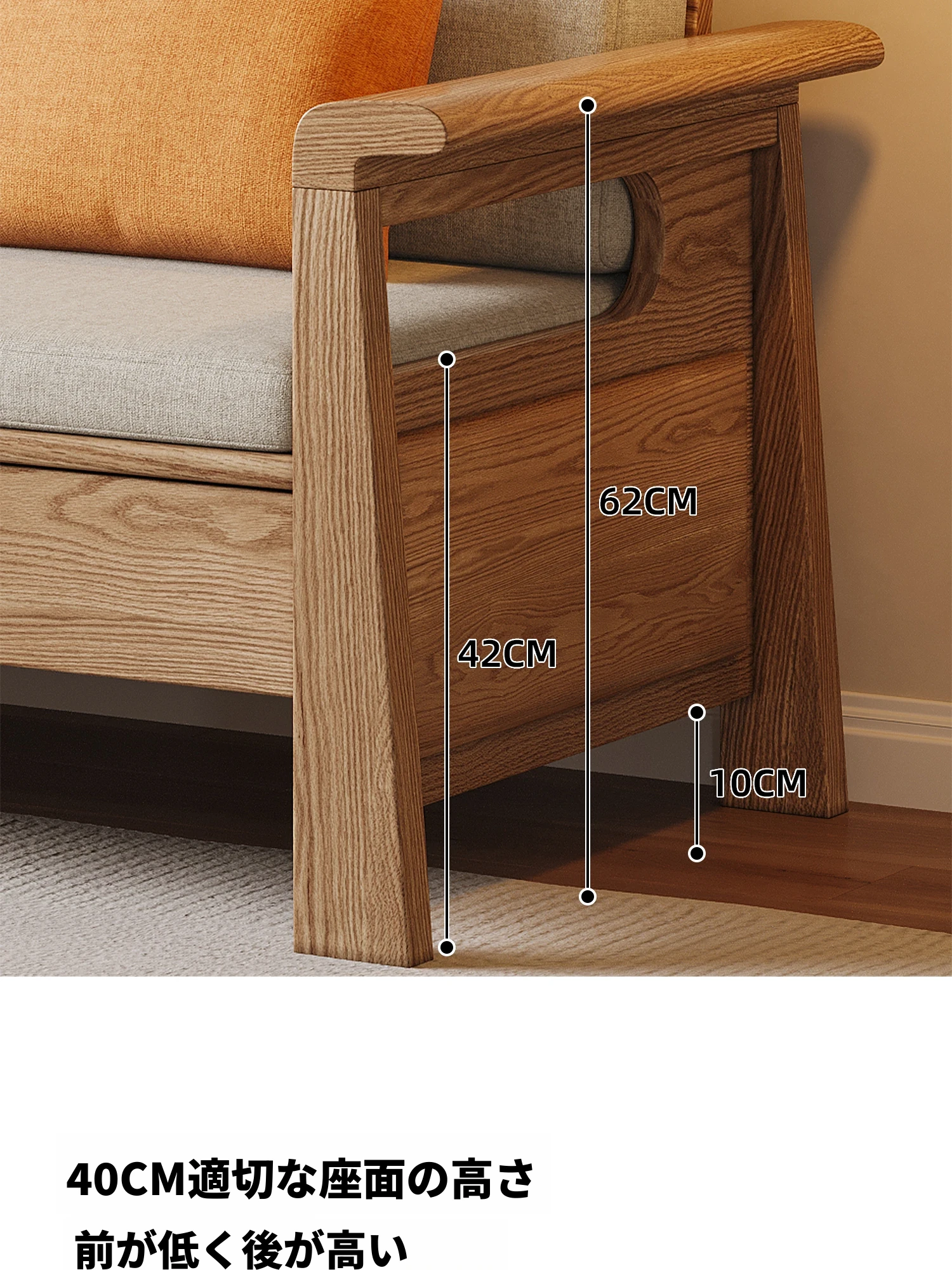 北欧スタイルの全木製ソファセット|モダンでシンプルなデザイン|冬夏兼用|ホワイトアッシュの引き出し収納付き|小型から大型のリビングに最適!
