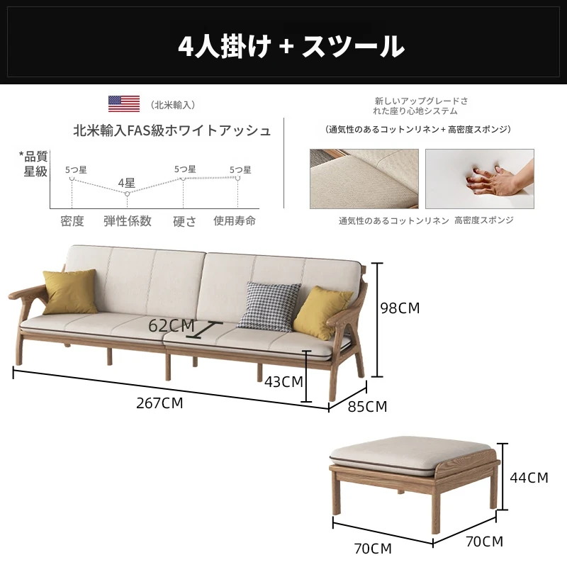 【【輸入FAS級ホワイトアッシュ】四人用+オットマン】