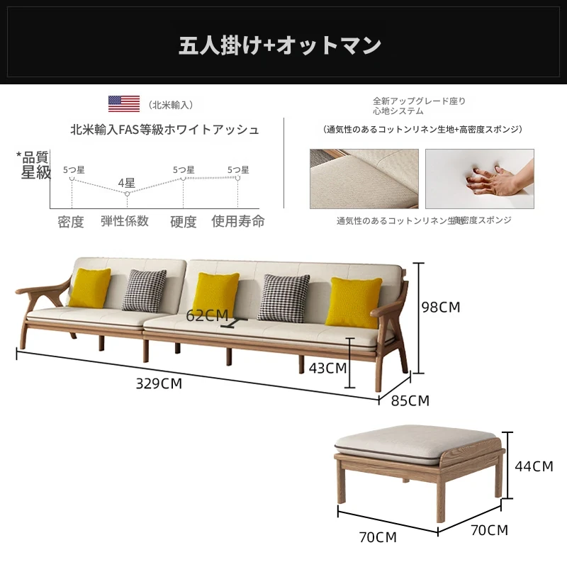 【【輸入FAS級ホワイトアッシュ】五人用+オットマン】