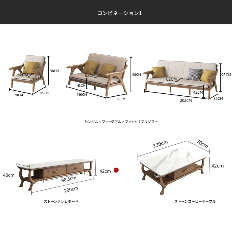 【一人用+二人用+三人用+コーヒーテーブルテレビキャビネット】