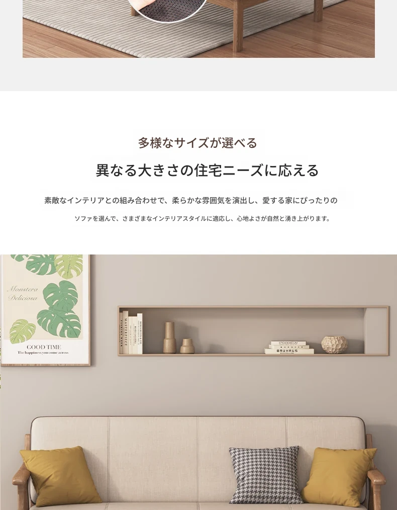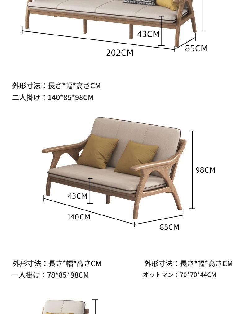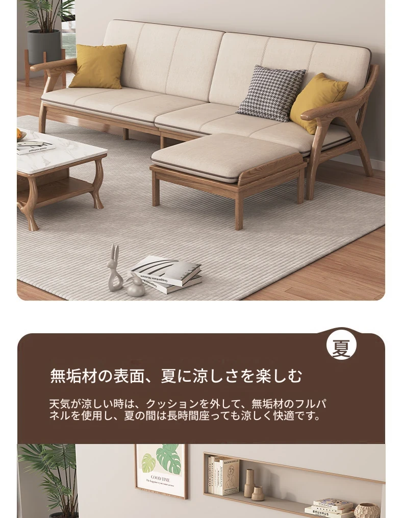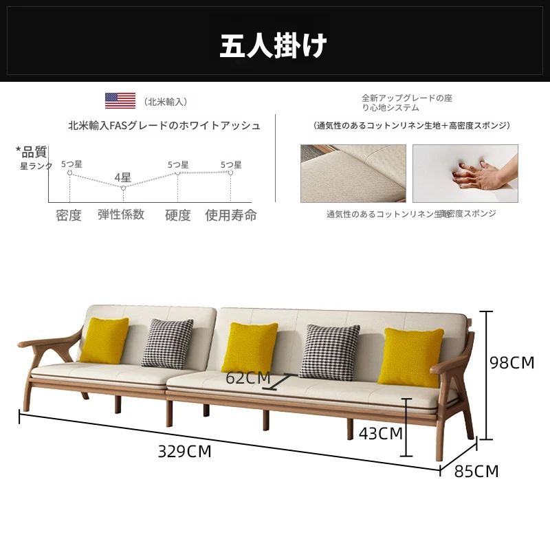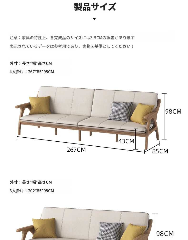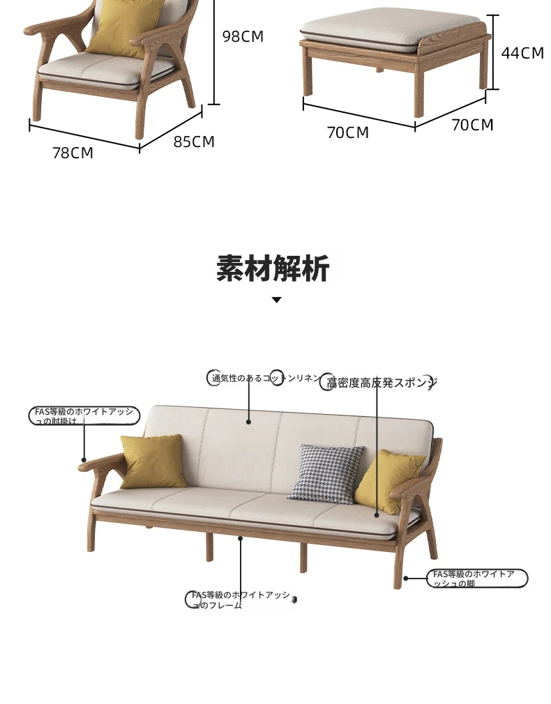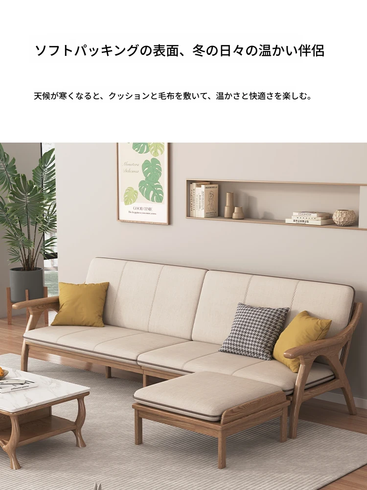 【国補専用】北欧スタイルの全白ラーチ無垢材使用、冬夏兼用のシンプルな小型3人掛けソファ。おしゃれなデザインで、お部屋を広く見せるアイテム!快適な座り心地を実現し、どんなインテリアにもぴったりです。