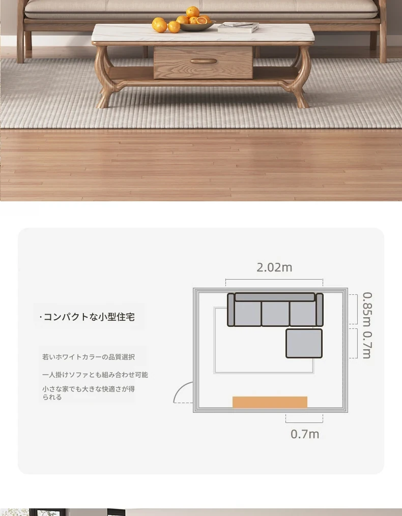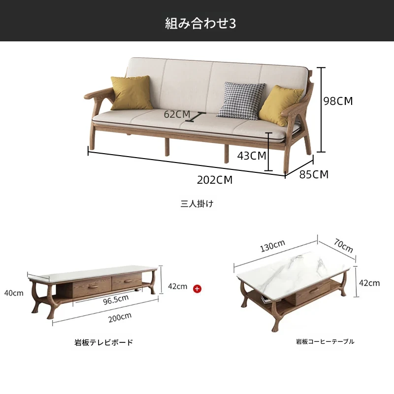 【【輸入FAS級ホワイトアッシュ】三人用+コーヒーテーブルテレビキャビネット】