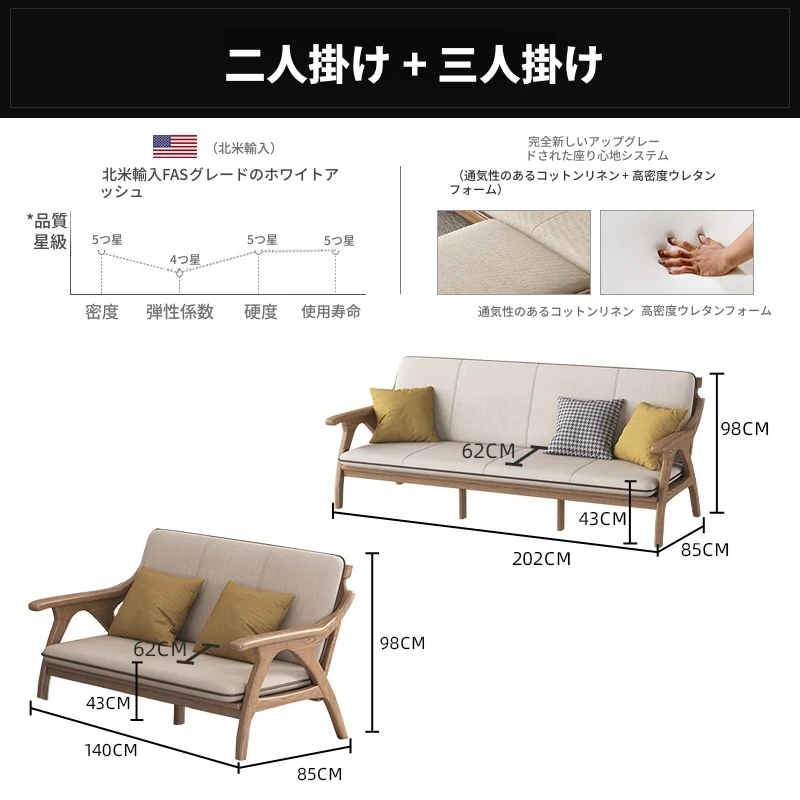 【【輸入FAS級ホワイトアッシュ】二人用+三人用】