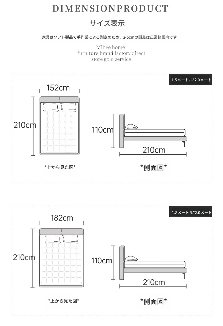 【ワッフル】本革ベッド ポプラ材のベッドフレーム 色選択可