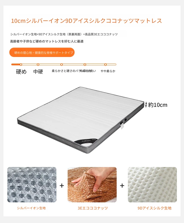 【ワッフル】本革ベッド ポプラ材のベッドフレーム + 10cm銀イオン9Dアイスシルクマット 両面使用可