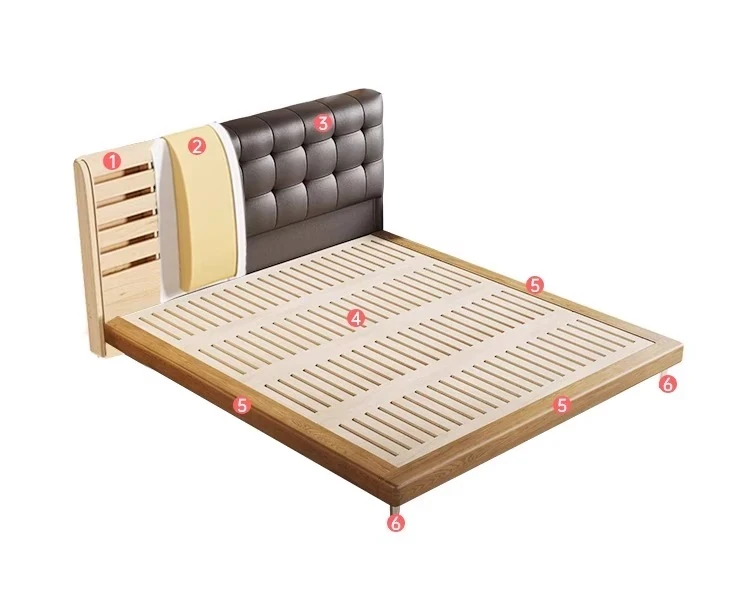 【ワッフル】本革ベッド ポプラ材のベッドフレーム + 22cm取り外し可能な独立袋入りスプリングココナッツマット + 1キャビネット