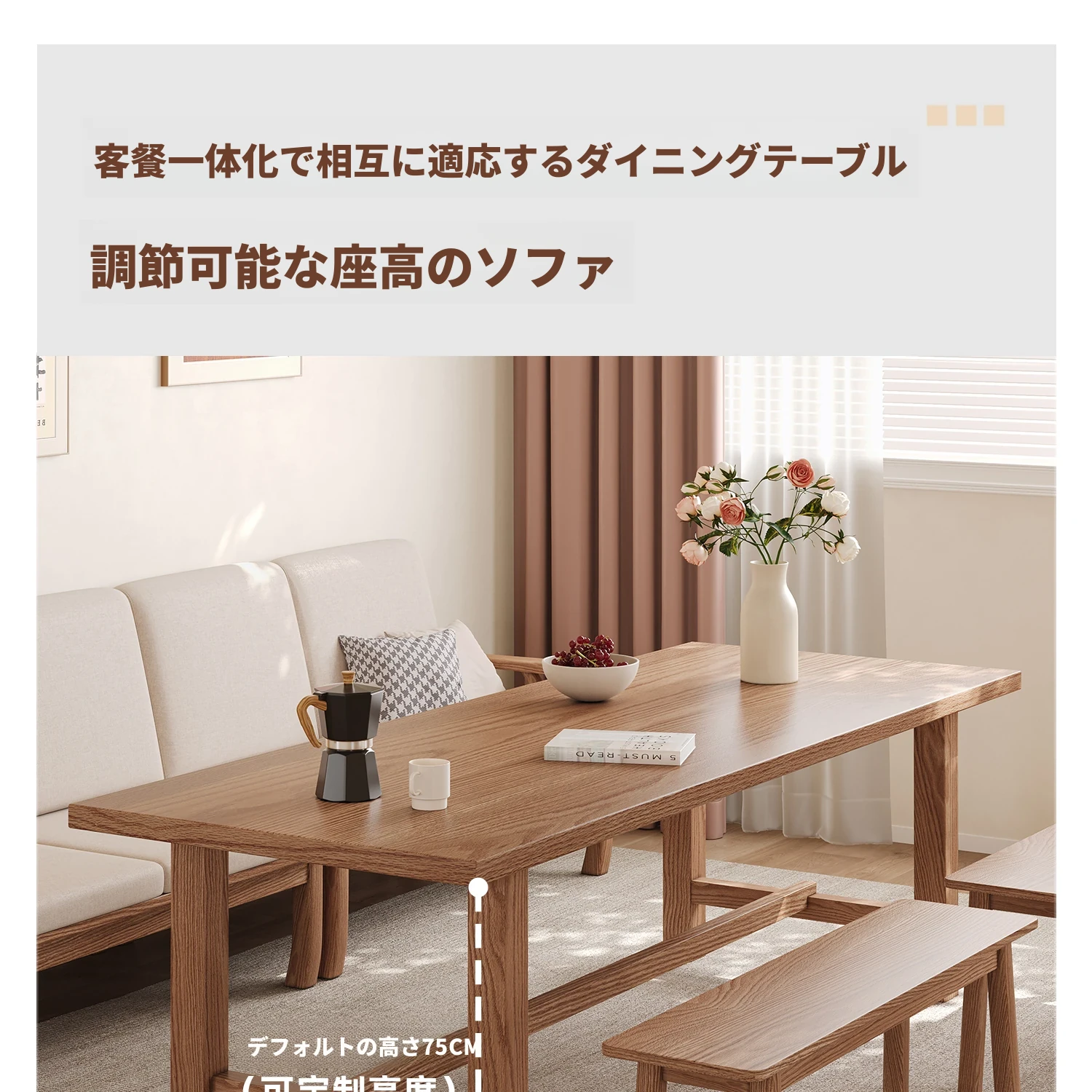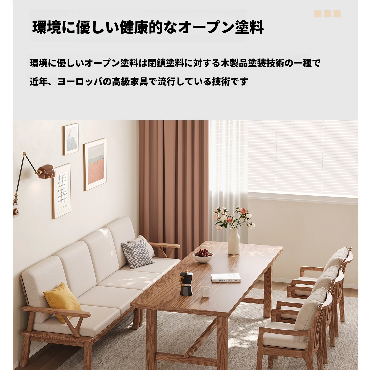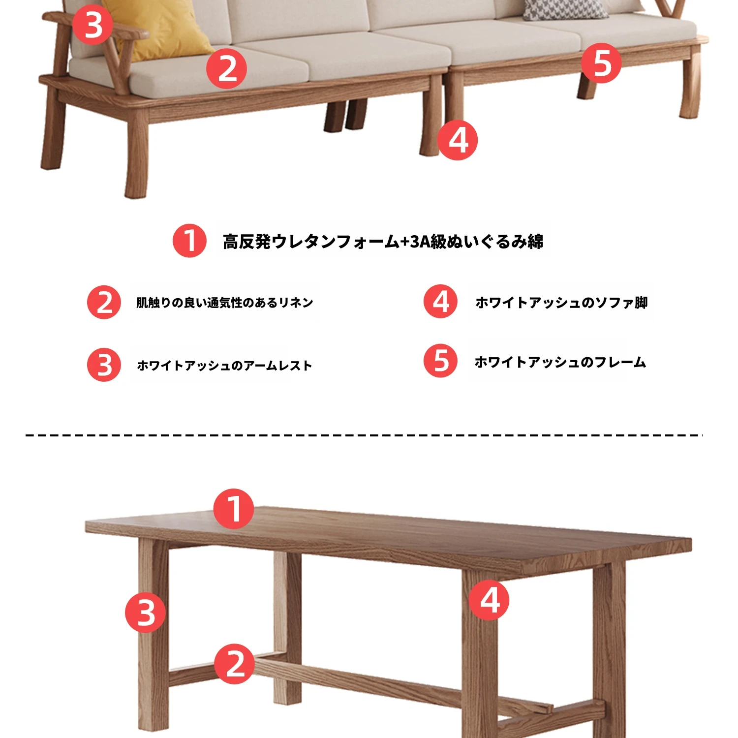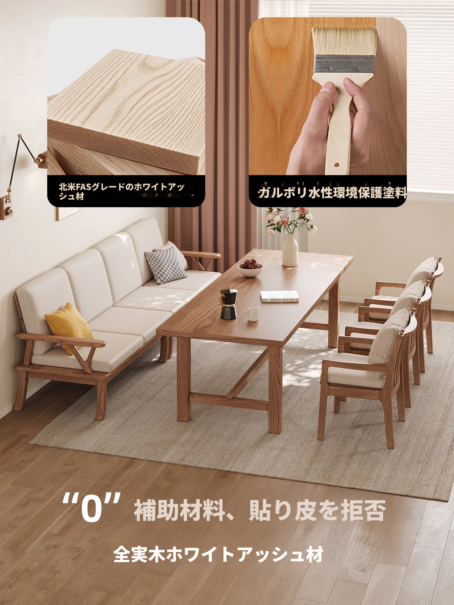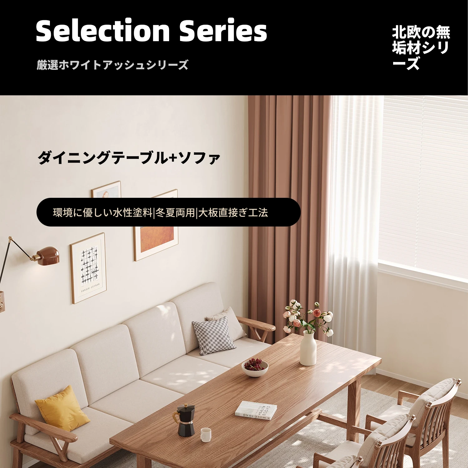 ホワイトアッシュのソファとダイニングテーブル・椅子のセットで、リビングとダイニングが一体化!家族団らんにぴったりな実用的でスタイリッシュなソファ。高品質な無垢材で、長く愛用できる一品です!