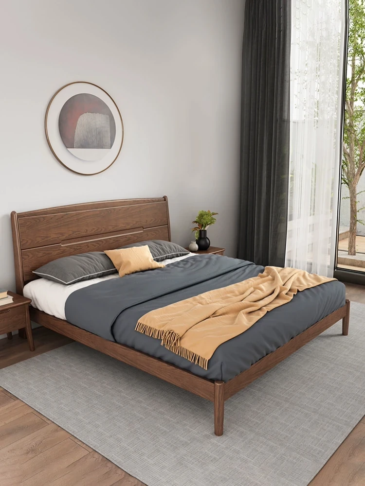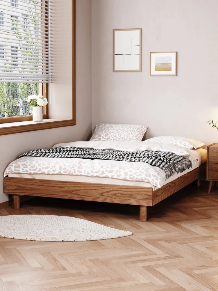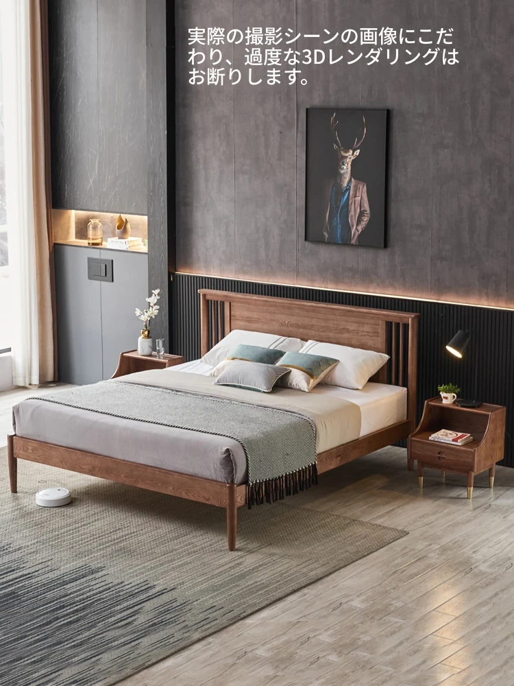 北欧スタイルのホワイトアッシュ材を使用したモダンでシンプルなフルウッドベッド 1.8m / 1.5m 主寝室に最適なコンパクトなデザイン 高脚ダブルマリッジベッド