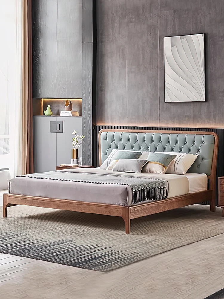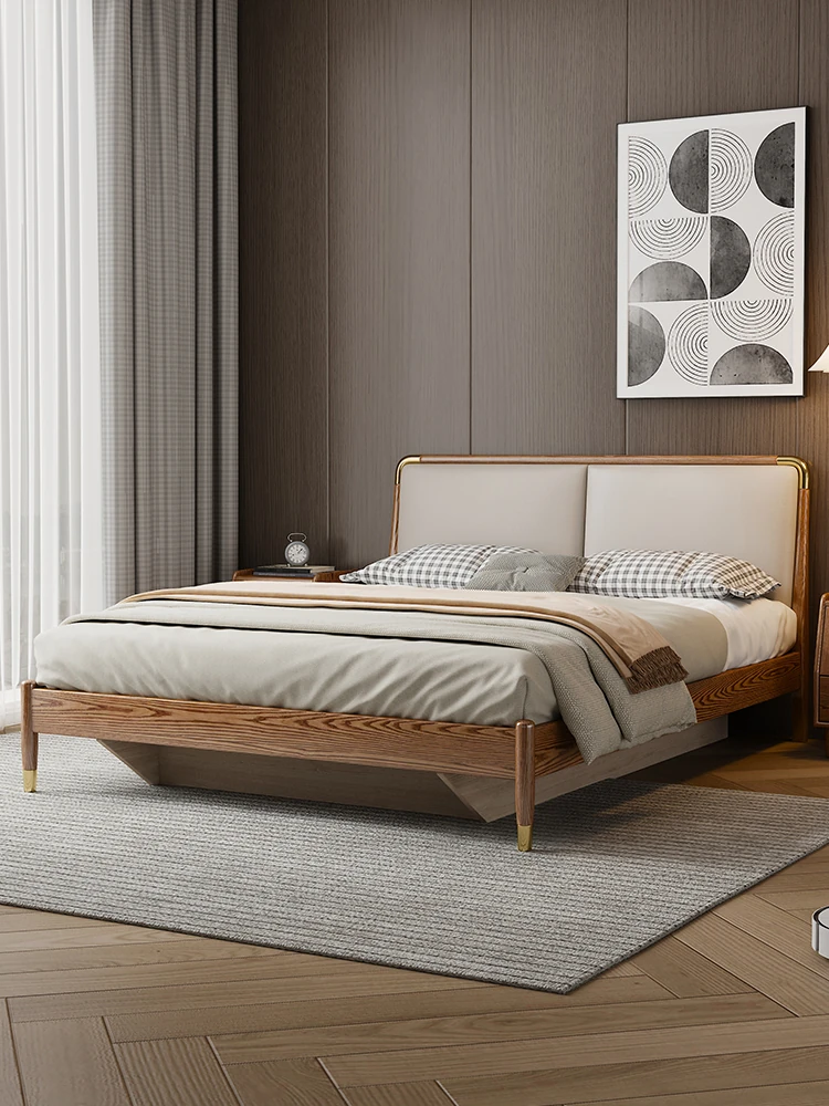北欧スタイルの1.5mホワイトアッシュ材ダブルベッド|1.8m主寝室用のラグジュアリーウィンザーモダンシンプルデザイン|新作大床で快適な眠りを手に入れよう!