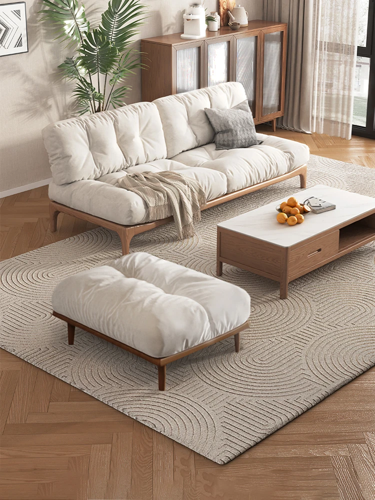 2023年新作!北欧風シンプルデザインの無垢材ソファセット - 小さなリビングに最適!新中式スタイルのホワイトアッシュ製ソファベッドで、快適さとスタイリッシュさを両立。あなたの空間をおしゃれに彩ります!