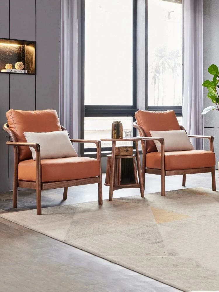新中式デザインのホワイトアッシュ無垢材製カジュアルチェア - 北欧スタイルの個性的な一人用ソファ、ユニークなフォルムと快適なアームレストで、あなたのリビングに洗練された雰囲気をプラス!