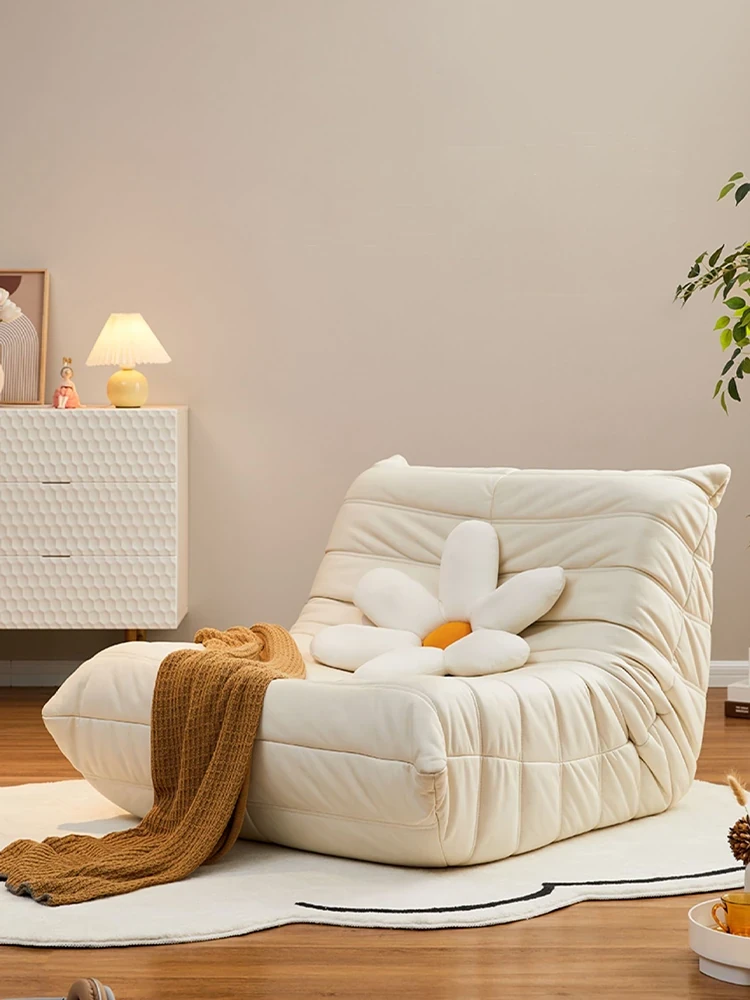 クリーミーな風合いの毛虫型ラウンジソファ - 寝転がれる・くつろげる、軽やかな贅沢感を楽しめるバルコニー・リビング・寝室に最適なインスタ風ソファ!