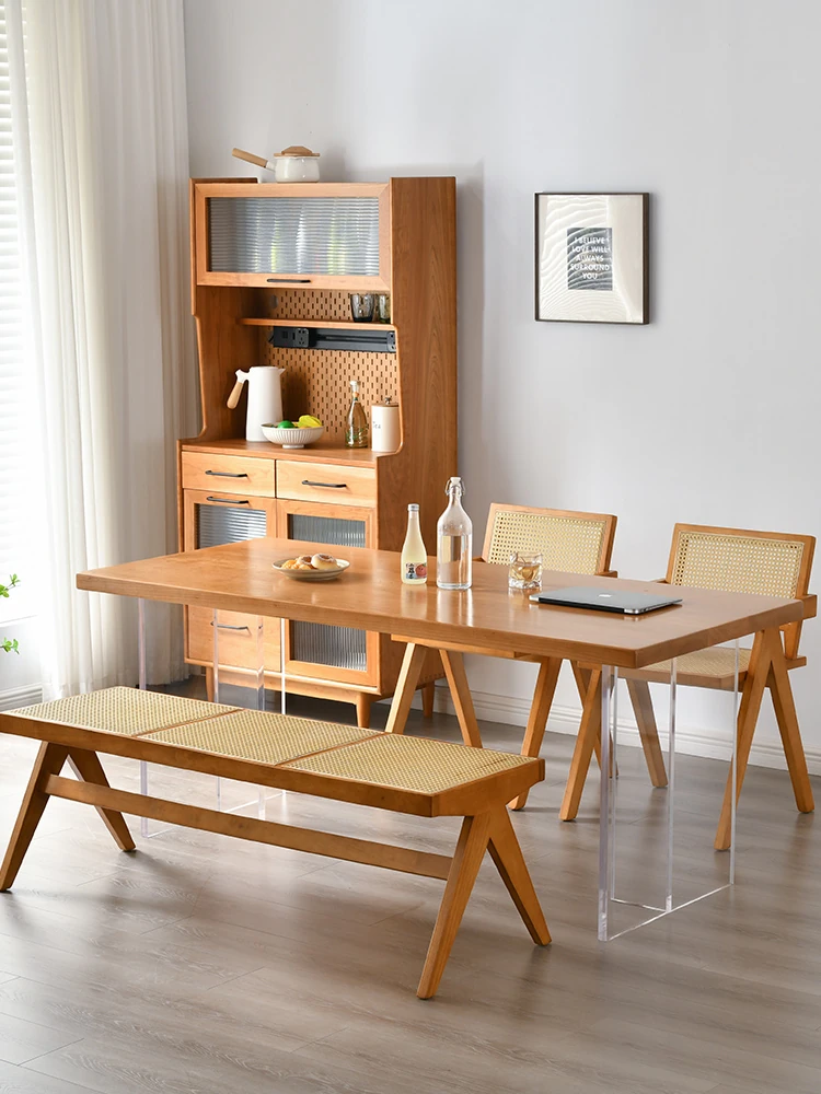 アクリル浮遊ダイニングテーブル - 和風リビングに最適な天然木のビッグボードデスク、北欧スタイルの長方形ワークテーブル。おしゃれで機能的、あなたの空間を格上げします!