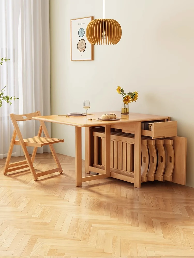 天然木材使用!折りたたみ式のコンパクトな実木ダイニングテーブル - スペースを最大限に活用するためのシンプルでスタイリッシュなデザイン!家庭用に最適、食事の時間をより快適に!